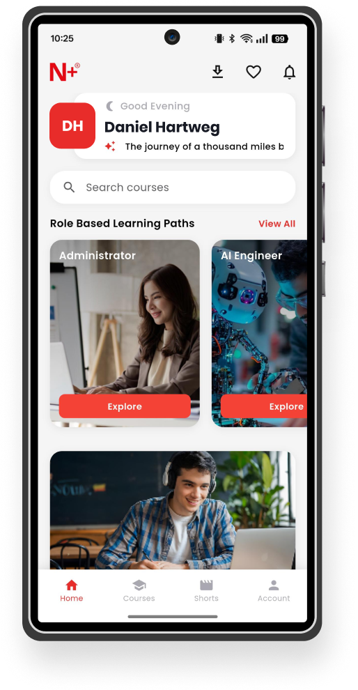 N+® offers a single, powerful subscription plan designed for simplicity and value. With a one-time setup valid for 12 months, you get unlimited access to over 100 certification prep courses. Whether you're learning on the web or mobile, the platform adapts to your schedule and pace. Plus, you can download your course completion certificates anytime, making it easy to showcase your achievements whenever you need.